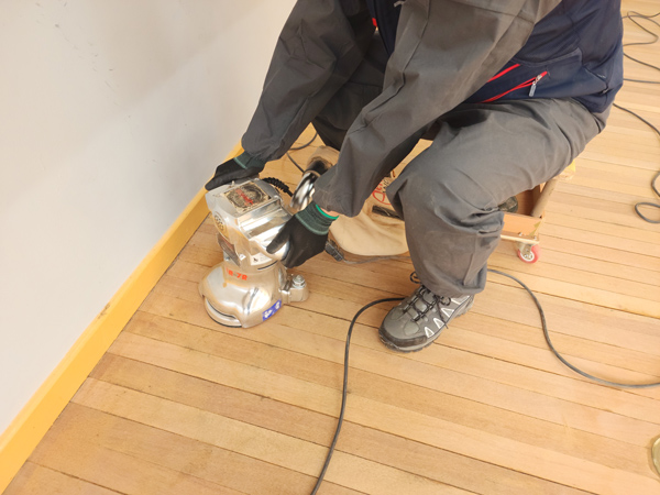 (마루표면의 상태를 고려하여 5회 이상 반복 샌딩작업을 한다) - 04 슬립샌딩을 이용하여 표면 고르기 작업을 실시한다.